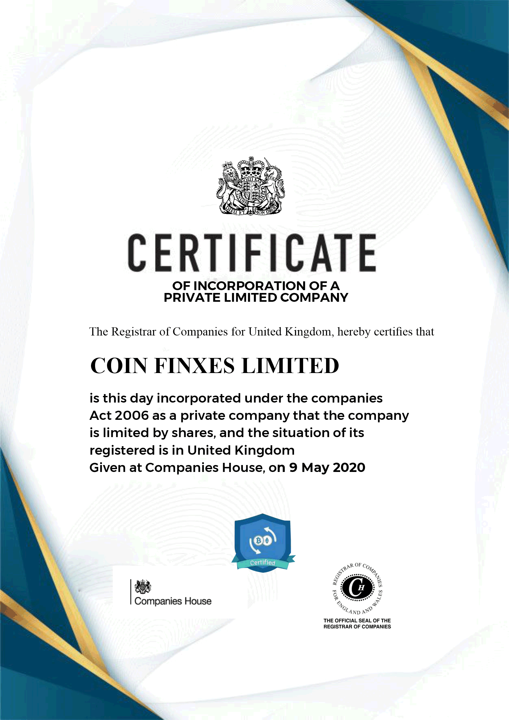 View Certificate of IncoporationCoinfinxes profitable and Trusted investment program, established by a strong team of highly skilled traders and investment consultants in the offline and online investment market.